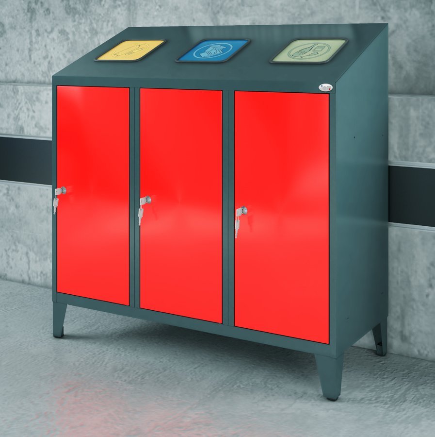 Odpadkový kôš pre vnútorné použitie. Na plast, papier, sklo. Korpus z 0,6 - 0,8 mm hrubého oceľového plechu, uzamykanie celý popis a parametre