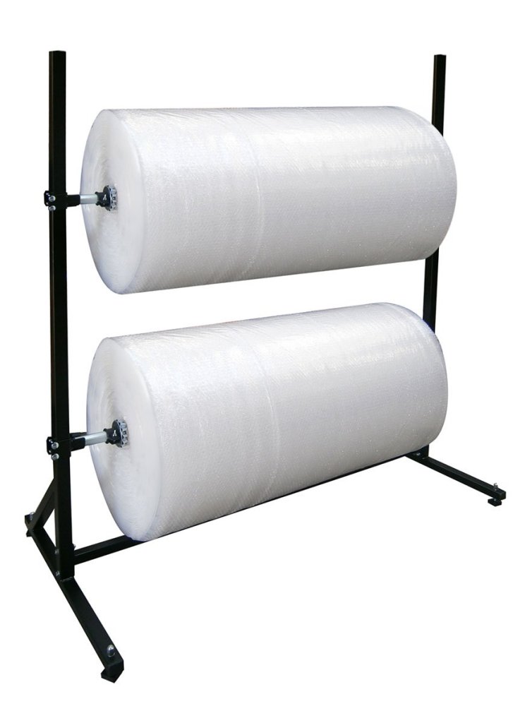 Dvojitý odvíjací stojan pre rolované baliace materiály. Rozmery: výška 1500 x šírka 805 x dĺžka 2000 mm. Farba konštrukcie čierna.