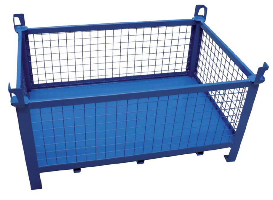 Vhodné pre prepravu a skladovanie materiálu, vystužená konštrukcia zaisťuje vysokú pevnosť, stohovateľná, lakovaná vo farbe RAL 5010. Výška 600 x šírka 800 x hĺbka 600 mm, nosnosť 750 kg.