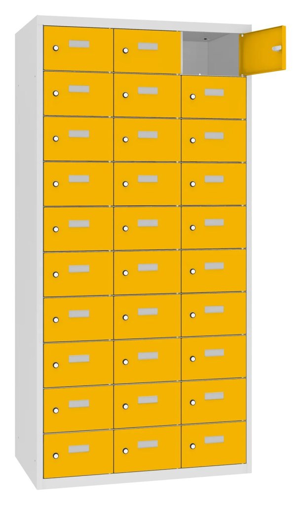 Skrinky pre ukladanie osobných predmetov zamestnancov, ako sú potraviny, mobilné telefóny, doklady a iné drobné predmety. Ideálne pre kuchynky či spoločenské miestnosti. Výška 1800 x šírka 875 x hĺbka 500 mm. 16 farebných odtieňov na výber v cene bez príplatku.
