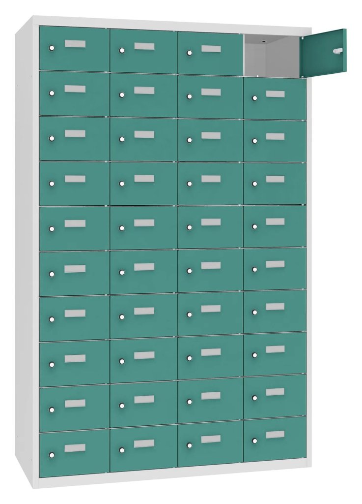 Skrinky pre ukladanie osobných predmetov zamestnancov, ako sú potraviny, mobilné telefóny, doklady a iné drobné predmety. Ideálne pre kuchynky či spoločenské miestnosti. Výška 1800 x šírka 1175 x hĺbka 500 mm. 16 farebných odtieňov na výber v cene bez príplatku.