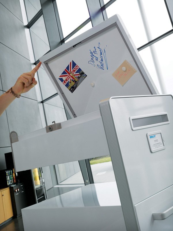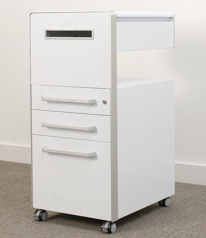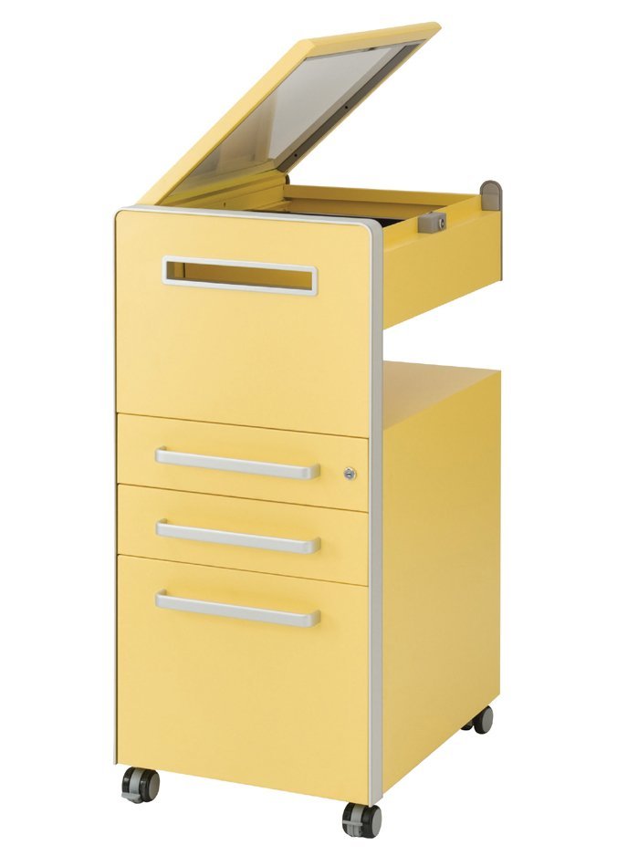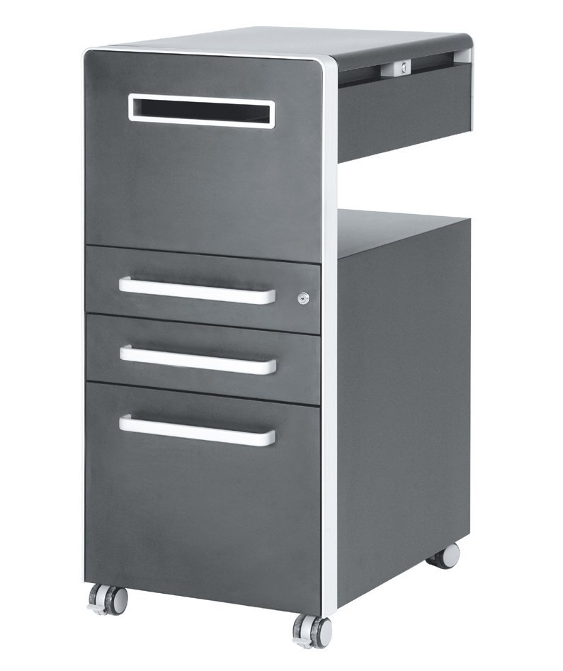 Mobilný osobný kontajner BITE. Ideálný pri striedaní pracovísk, kontajner s Vašimi dokumentami a osobnými vecami si ľahko premiestnite kamkoľvek. Výška 930 x šírka 428 x hĺbka 573 mm. Pravé alebo ľavé prevedenie, sklopné veko použiteľné ako tabuľa.