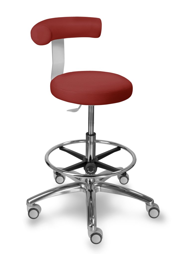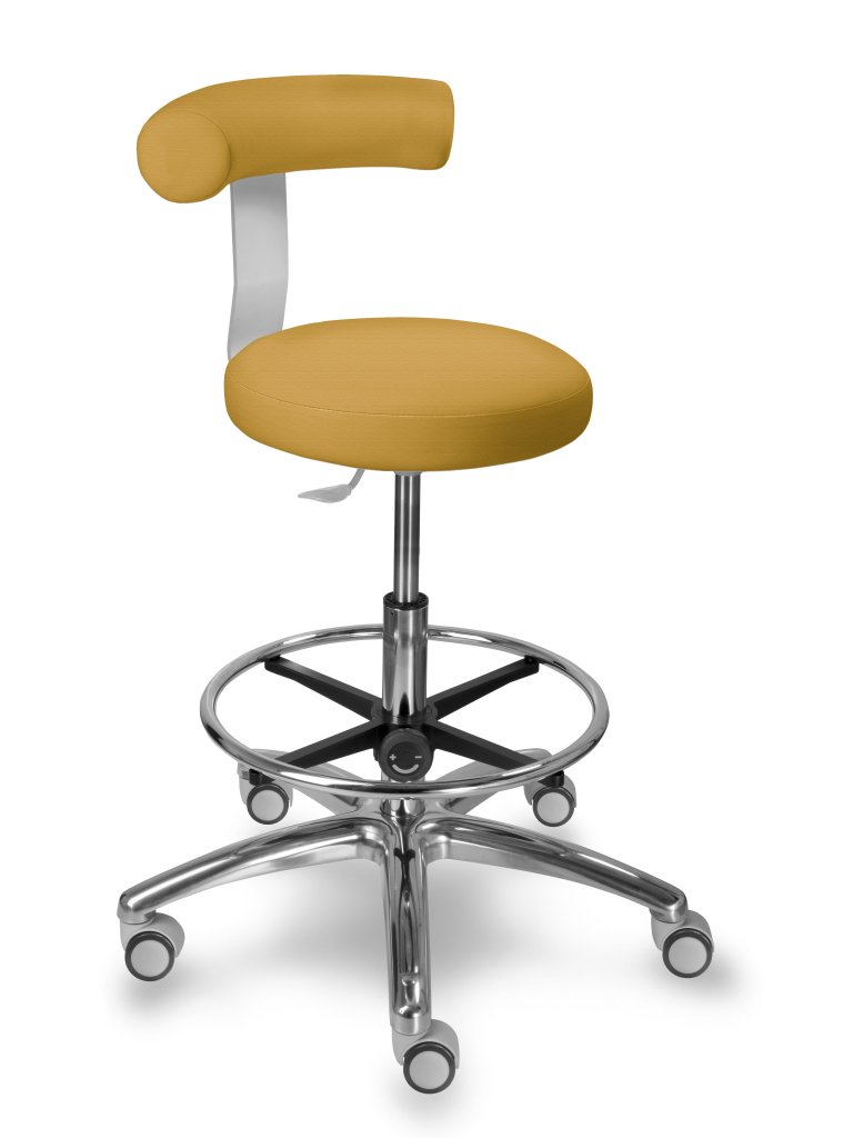 Zdravotnícka stolička s tvarovaným sedákom "sedlo", vyšším piestom a kruhovou oporou nôh. Farba kostry šedá alebo čierna. Šírka sedadla 42 cm. Výška sedenia 51 - 71 cm.
