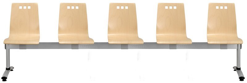 5-lavica, kovové podnože vo farbe N1 čierna, nohy hliníkové leštené, spojovací profil a úchyty čierne, čierne krycie plasty sedadla a operadla a čierne záslepky chrbtového uchytenia operadla.