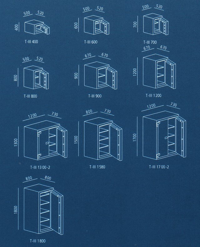 Pancierový trezor Titan T-III 1700 , bezpečnostná trieda 3. Na ochranu cenností, vysokej hotovosti a dokumentov. Farba svetlo šedá RAL 7035. Vonkajší rozmer - V 1700 x Š 1200 x H 730 mm, vnútorný rozmer - V 1560 x Š 1060 x H 530 mm. Hmotnosť 1720 kg.