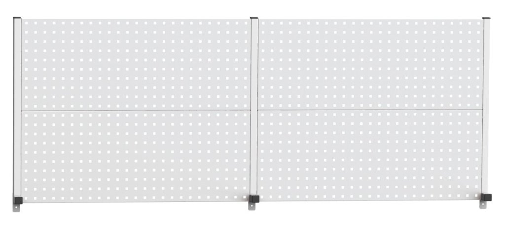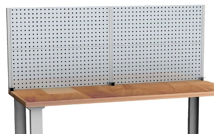 Perfopanel na zavesenie držiakov náradia k dielenskym pracovnym stolom a doskám šírky 2000 mm. Výška 760, šírka 2000, hĺbka 95 mm.