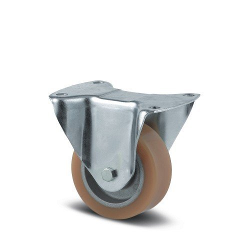 Pevné prístrojovej koleso s ø 125 mm, teleso vyrobené z lisovanej ocele, pozinkováno, koliesko uchytené stredovou skrutkou a maticou, upínacia platnička. Stred kolesa vyrobený z hliníkovej zliatiny, behúň liaty z polyuretánu, presné guličkové ložisko.