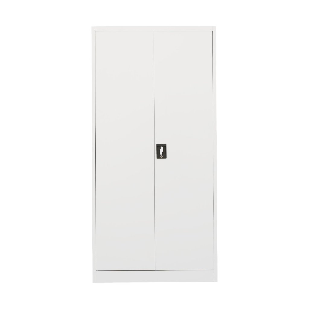 Dvojdverová DEMONTOVANÁ skriňa z oceľového plechu hrúbky 0,6 mm. Výška 1950 x šírka 900 x hĺbka 400 mm, 4x polica, cylindrický rozvorový zámok s dvoma kľúčmi. Povrchová úprava práškovou farbou.