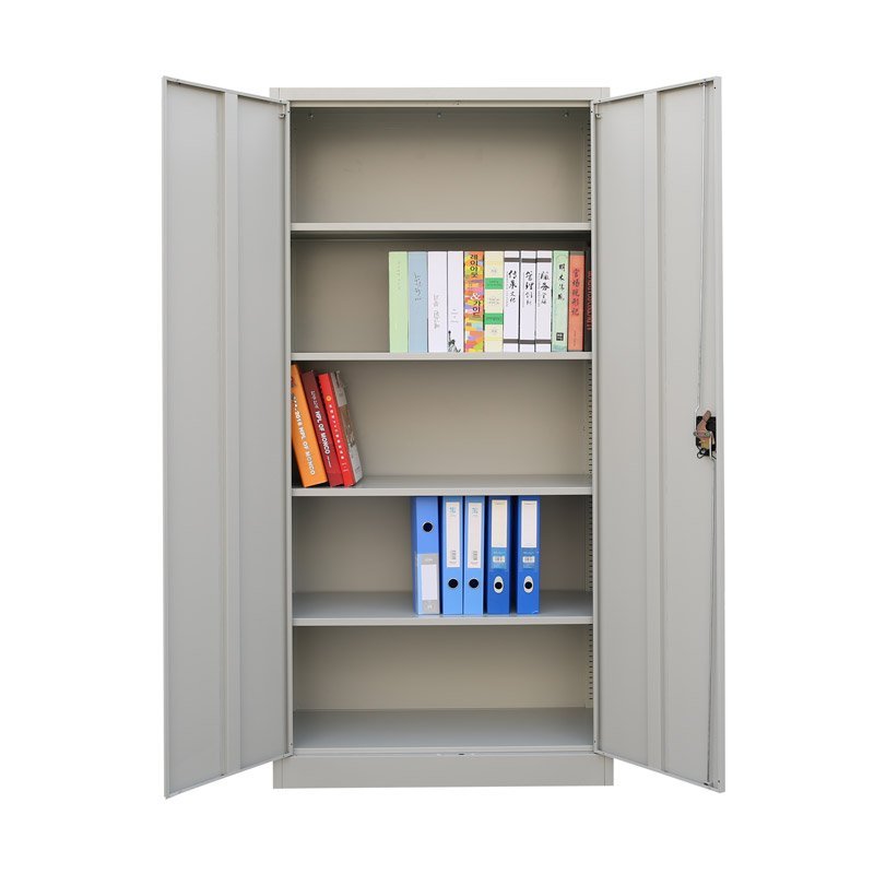 Dvojdverová demontovaná skriňa z oceľového plechu hrúbky 0,6 mm. Výška 1850 x šírka 900 x hĺbka 390 mm, 4x polica, cylindrický rozvorový zámok s dvoma kľúčmi. Povrchová úprava šedou práškovou farbou RAL 7047.