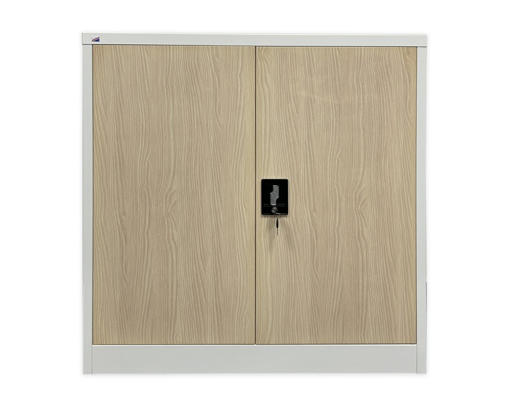 Dvojdverová kovová skriňa na šanóny, 2x polica, výška 1000, šírka 800, hĺbka 383 mm, uzamykateľná. Farba šedá RAL 7035.