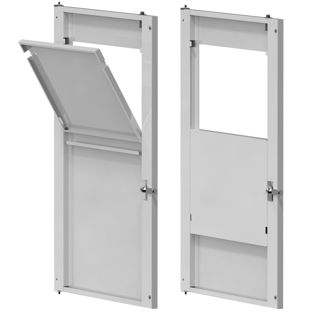 - výklopné dvierka s tvrdeným sklom a posuvným držiakom pre monitor