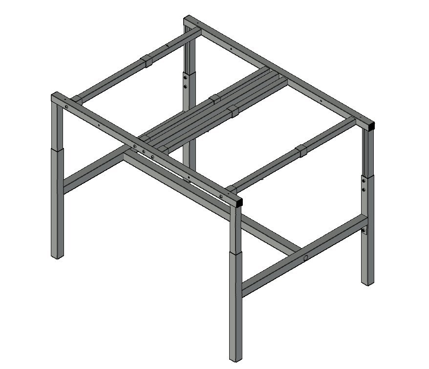 Podnož pre výškovo nastaviteľný antistatický stôl z pevných oceľových profilov. Rozmery 650 – 950 x 1500 x 700 mm.