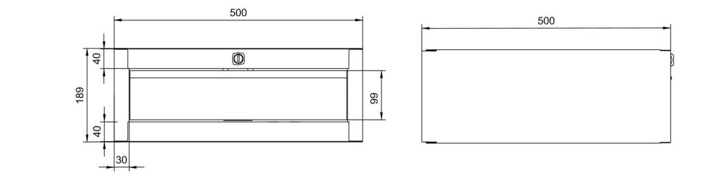 Podvesná zásuvka pracovného stolu, šírka 500, výška 189, hĺbka 500 mm. 1x zásuvka 99 mm. Farba korpusu RAL 7035 svetlosivá.