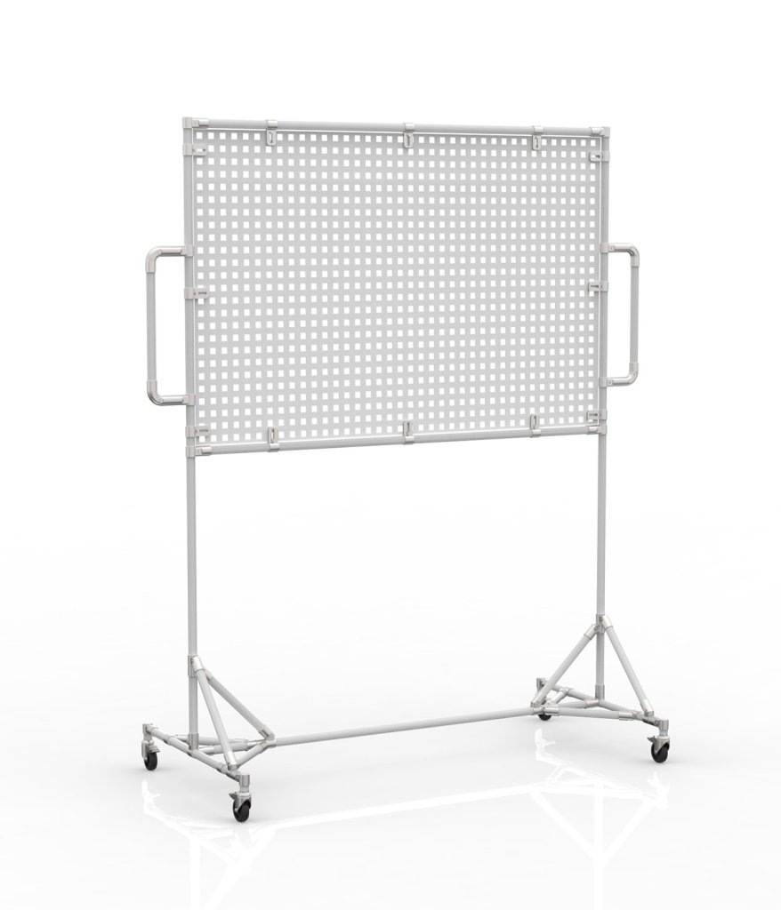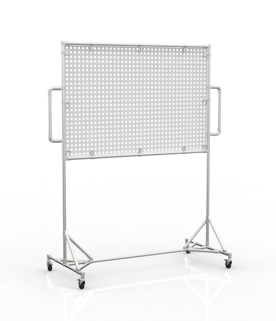 Jednostranná pojazdná tabuľa s perfopanelom na praktické uchytenie úložných boxov či materiálov. Vďaka praktickým kolieskam je celý popis a parametre