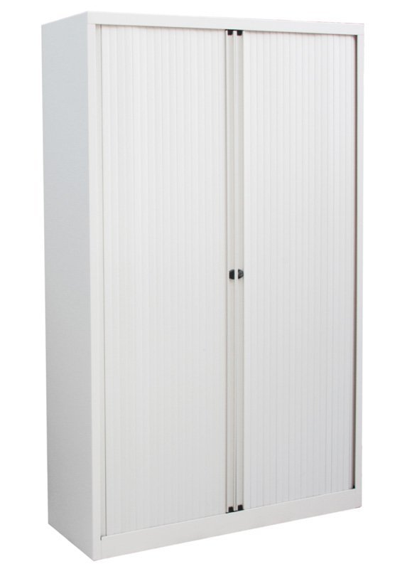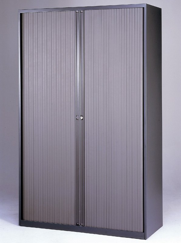Kovové skrine s horizontálnou roletou a dvomi policami, šírka 1200, výška 1181, hĺbka 430 mm, rôzne farby.