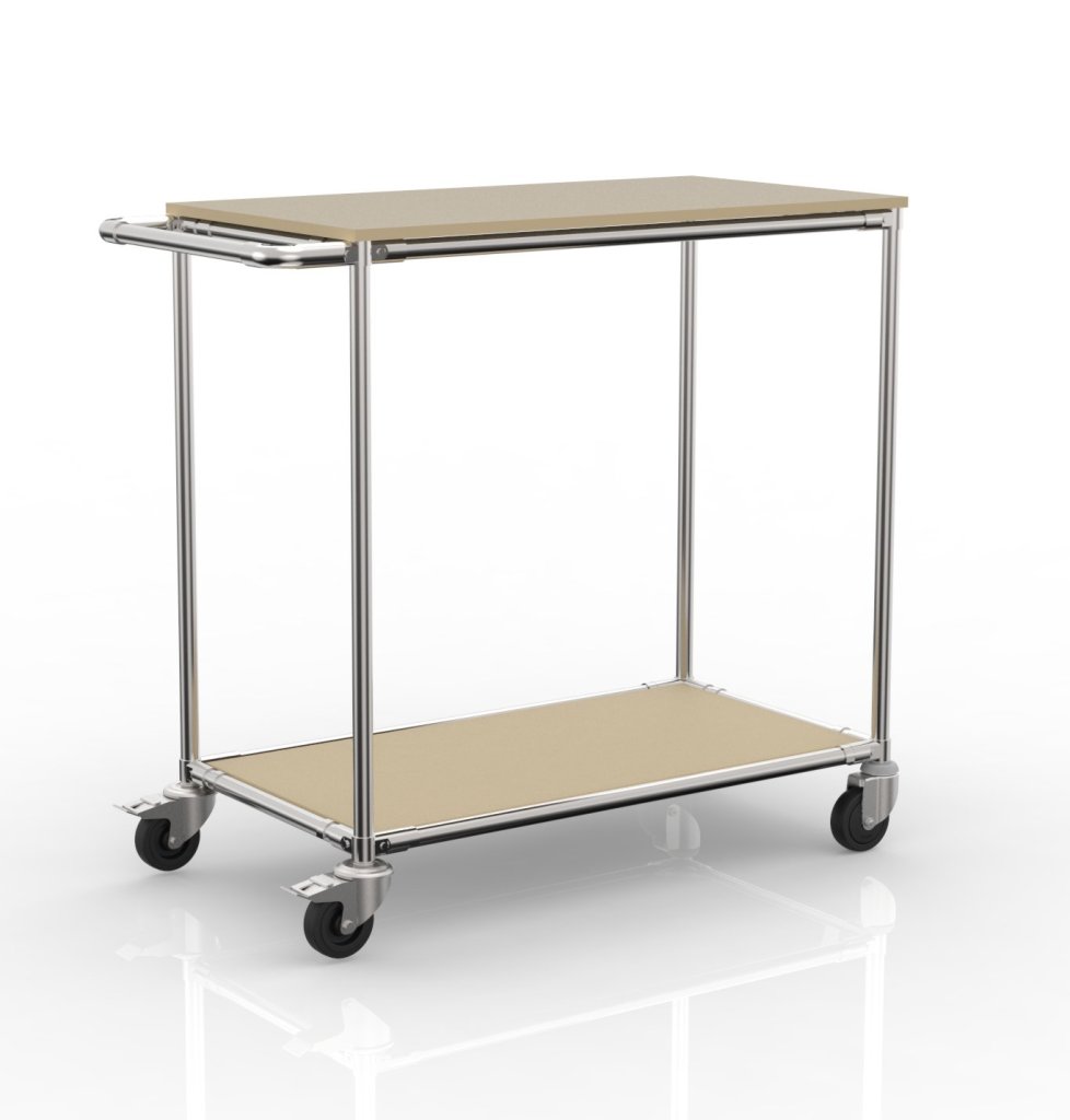 Policový vozík z rúrkového stavebnicového systému predstavuje modernú a ekonomickú alternatívu k tradičnému policovému vozíku s oceľovou konštrukciou. Ložná plocha je tvorená kvalitnými doskami DTDS Kronospan, ktoré poskytujú spoľahlivú podporu a sú odolné voči bežnému opotrebovaniu. Policový vozík je vybavený 4x kolieskami pre jednoduchú manipuláciu - 2x otočné koleso s brzdou a 2x otočné koleso bez brzdy. Nosnosť na poschodie 100 kg, celková nosnosť 200 kg. Rozmery vozíka 1010 x 525 x 975 mm.