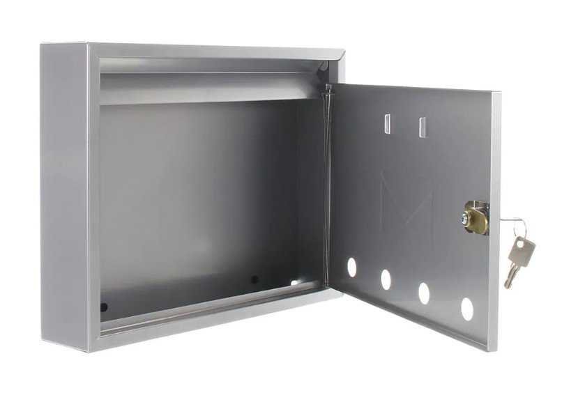 Poštová schránka, farba strieborná, pre vnútorné použitie, do zostavy, predný vhoz. Výška 240 x šírka 320 x hĺbka 60 mm.