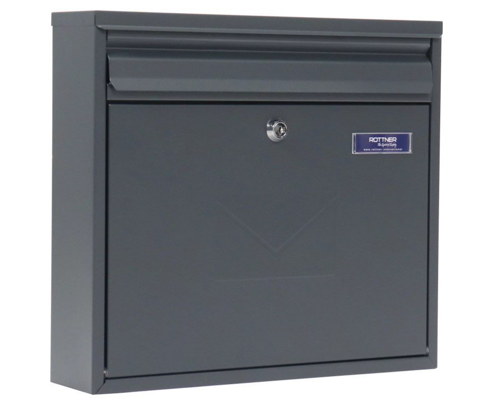 Veľká poštová schránka pre vnútorne použitie vo farbe antracit, predný vhod. Výška 320 x šírka 360 x hĺbka 85 mm.