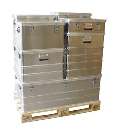 Univerzálne stohovateľné debny vyrobené z vysoko kvalitnej hliníkovej zliatiny. Dva úchyty bezpečné z hľadiska úrazu. Steny vystužené trapézovými rebrami. Rôzne rozmery, objem 36 - 155 l.