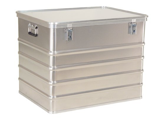 Univerzálna stohovateľná debna vyrobená z vysoko kvalitnej hliníkovej zliatiny. Dva úchyty bezpečné z hľadiska úrazu. Steny vystužené trapézovými rebrami. Vonkajšie rozmery výška 430 x šírka 578 x hĺbka 758 mm, vnútorné rozmery výška 405 x šírka 548 x hĺbka 728 mm. Objem 155 l.