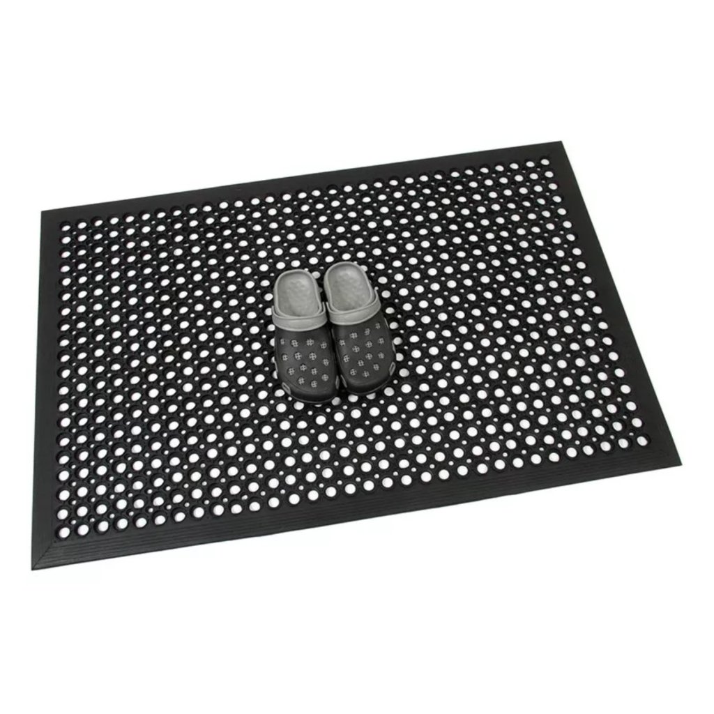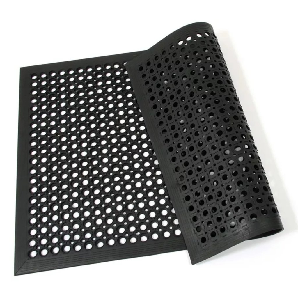 - rozliate tekutiny odtekajú cez otvory v rohoži