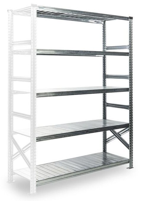 Bezskrutkový prístavný regál SUPER určený k nastavovaniu základného regálu SUPER. Možnosť dopĺňať do nekonečných dĺžok. Prevedenie pozinok, 5 políc, nosnosť police 150 kg. Výška 2500 mm, šírka police 1200 mm, hĺbka police 320 mm.