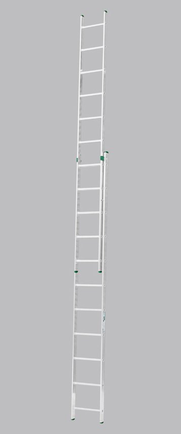 Dvojdielny výsuvný rebrík Eurostyl, počet priečok 2x16, max. výsuvná dĺžka 7,66m a šírka 397mm, zelenočierne koncovky. Tieto rebríky sú vyrábané z odľahčených materálov s dôrazom na ľahkosť a jednoduchú manipuláciu. Vhodné pre použitie v domácnostiach a firmách. Maximálna nosnosť 150 kg.
