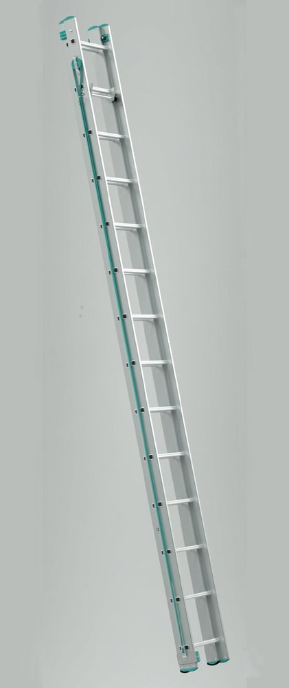 Dvojdielny výsuvný rebrík Eurostyl s lanom, počet priečok 2x14, max. výsuvná dĺžka 6,81 m a šírka 397 mm, zelenočierne koncovky. Tieto rebríky sú vyrábané z odľahčených materálov s dôrazom na ľahkosť a jednoduchú manipuláciu. Vhodné pre použitie v domácnostiach a firmách. Maximálna nosnosť 150 kg. Lano umožňuje predĺžiť rebrík v svislej polohe.