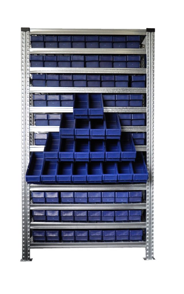 Regál s prepravkami 100 x 230 mm - 24 ks, 100 x 115 mm - 40 ks (4 modely)531.03 Eur bez DPH