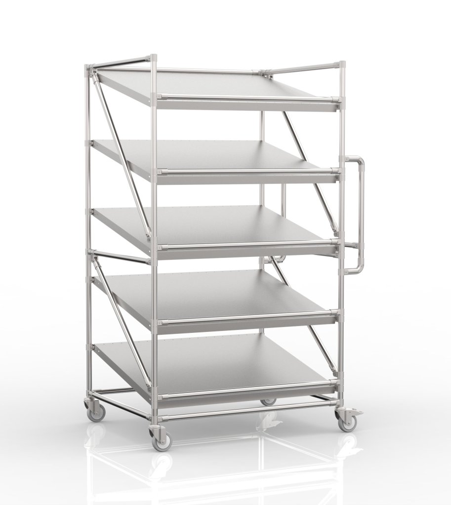 Regálový vozík na prepravky s piatimi šikmými policami je praktickým pomocníkom na manipuláciu vo výrobných firmách a logistických celý popis a parametre