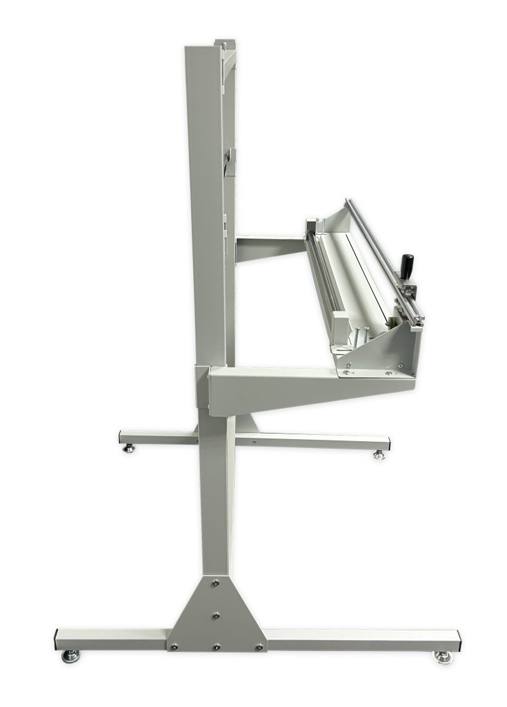 Vodorovný rezací stojan na rôzne baliace materiály. Rozmery výška 1430 x šírka 935 x dĺžka 1000 mm. Farba konštrukcie šedá.