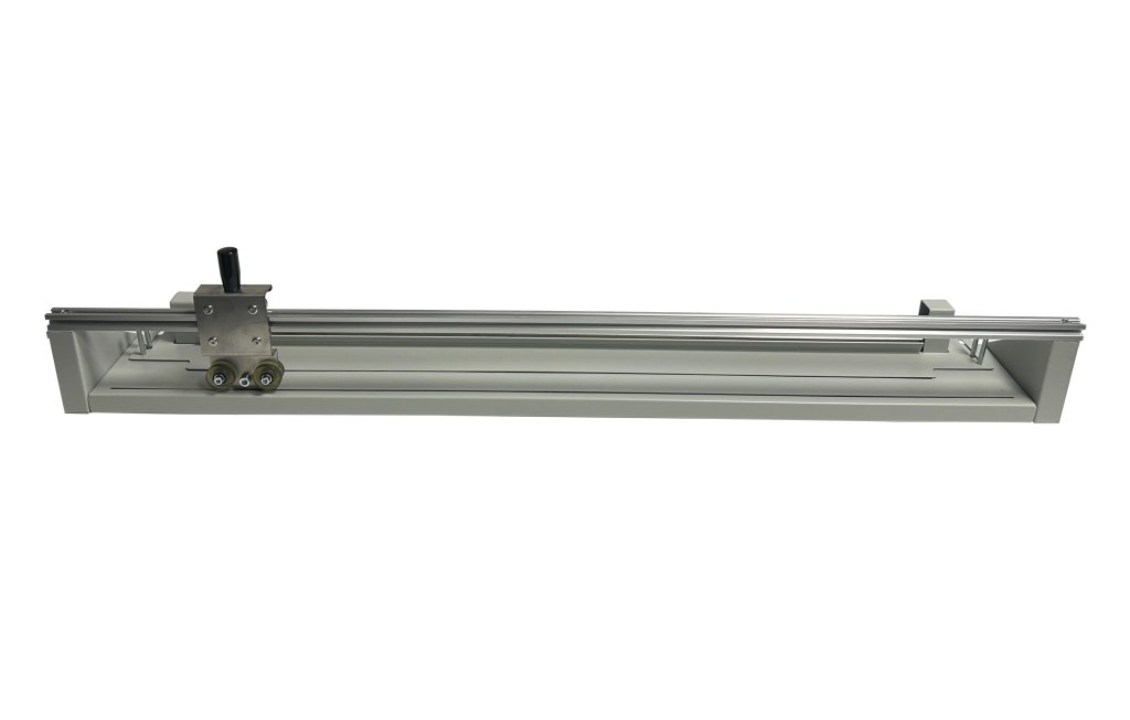 Rezací stojan na prichytenie k stolu. Rozmery: výška 210 x šírka 1180 x hĺbka 150 mm. Farba konštrukcie sivá RAL 7035.