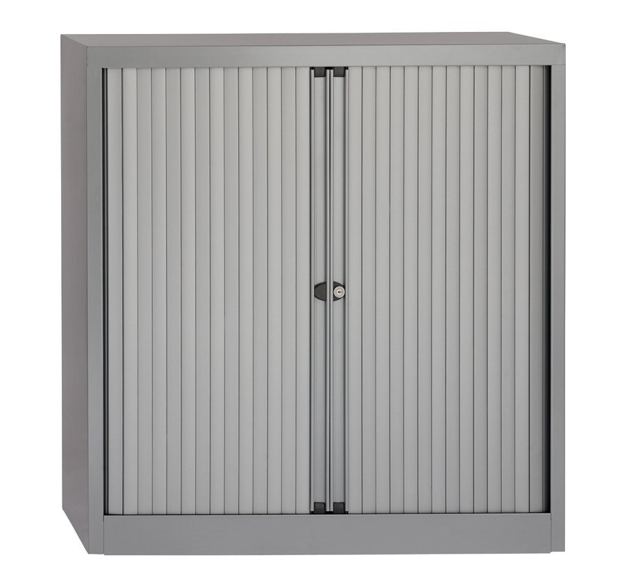 Kovové skrine s horizontálnou roletou s jednou policou, šírka 1000, výška 695, hĺbka 430 mm, rôzne farby.