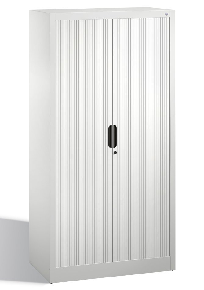 Roletová kovová skriňa dvojdverová. Výška 1660, šírka 800, hĺbka 420 mm. 3 police. Farba korpusu a rolety svetlosivá RAL 7035 celý popis a parametre