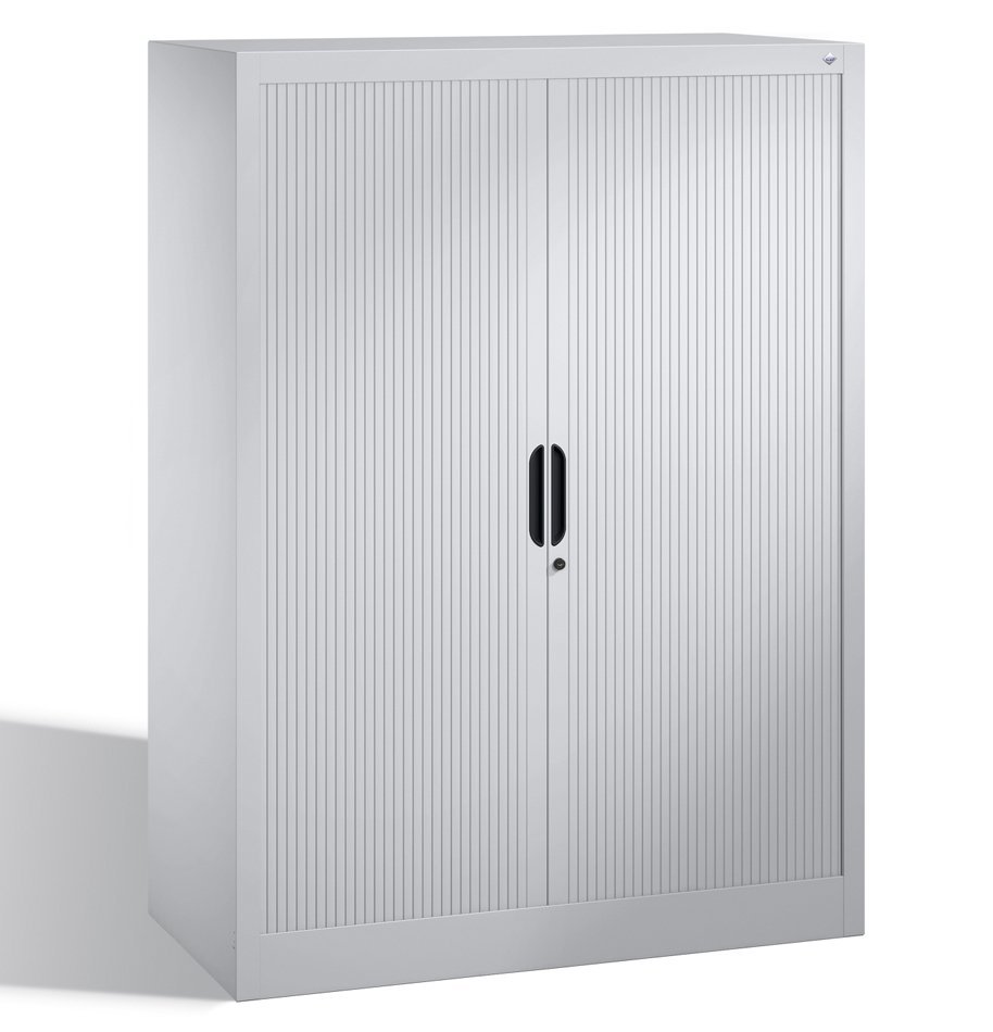 Roletová kovová skriňa dvojdverová. Výška 1345, šírka 1000, hĺbka 420 mm. 3 police. Farba korpusu a rolety svetlosivá RAL 7035 celý popis a parametre