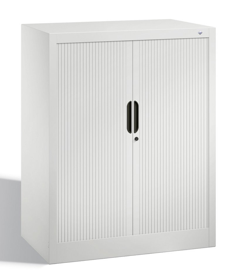 Roletová kovová skriňa dvojdverová. Výška 1030, šírka 800, hĺbka 420 mm. 2 police. Farba korpusu a rolety svetlosivá RAL 7035 celý popis a parametre