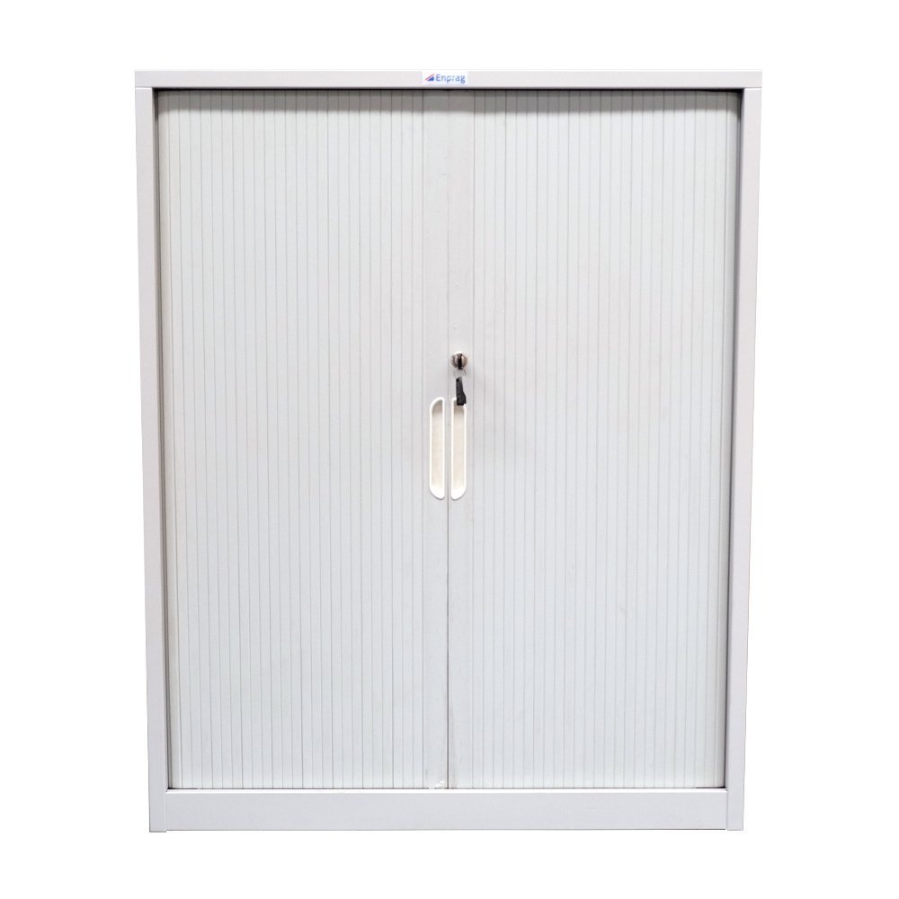 Dvojdverová demontovaná skriňa z oceľového plechu hrúbky 0,6 mm. Výška 1130 x šírka 900 x hĺbka 390 mm, 2x polica, cylindrický rozvorový zámok s dvoma kľúčmi. Povrchová úprava práškovou farbou - korpus tmavosivý, dvere biele.