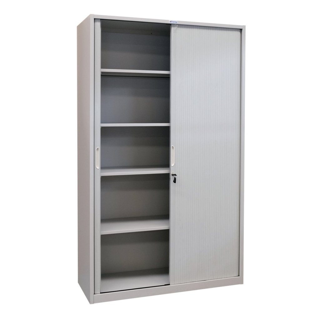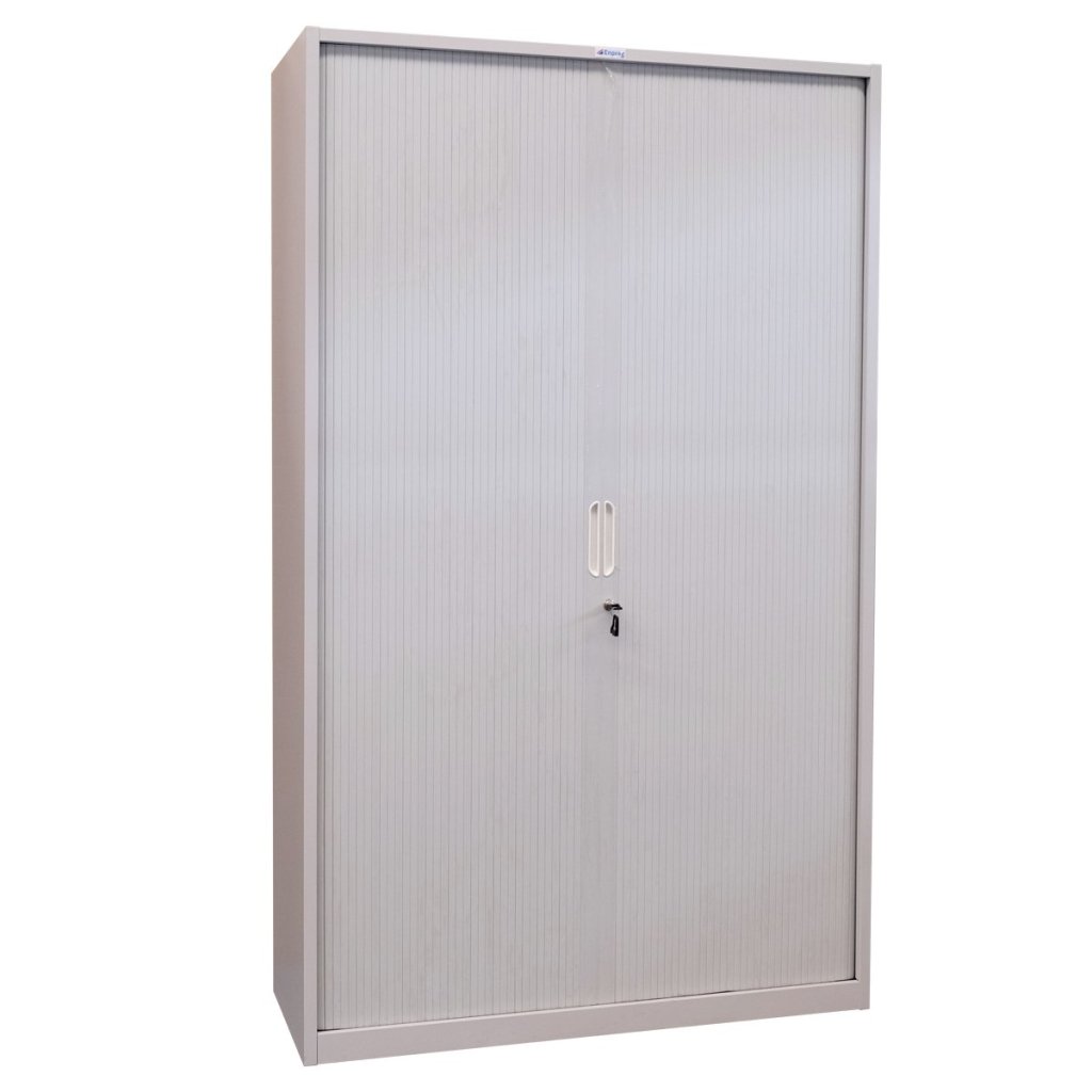 Dvojdverová demontovaná skriňa z oceľového plechu hrúbky 0,6 mm. Výška 1130 x šírka 900 x hĺbka 390 mm, 2x polica, cylindrický rozvorový zámok s dvoma kľúčmi. Povrchová úprava práškovou farbou - korpus tmavosivý, dvere biele.
