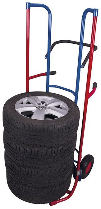 Ľahko ovládateľná rudla na pneumatiky s priemerom 540 - 820 mm. Kolesá s guľôčkovým ložiskom a rukoväť s mäkkým poťahom pre ľahkú manipuláciu. Ošetrené práškovou farbou 5010, enziánová modrá. Držiak pneumatík farby RAL 3000, ohnivo červená. Odolné proti nárazu a poškodeniu.
