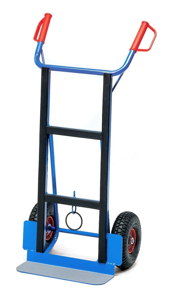 Oceľová rudla nemeckej výroby pre prepravu bielej techniky, konštrukcia zo zvarenej ocele, lopata z oceľového plechu, ochranné madlá pre ruky. Lopata a niektoré časti sú polstrované. Farba modrá RAL 5007. Dve pneumatické kolesá ložiskové. K vozíku je možné prikúpiť špeciálne vkladacie držadlá pre sťahovanie po schodoch.