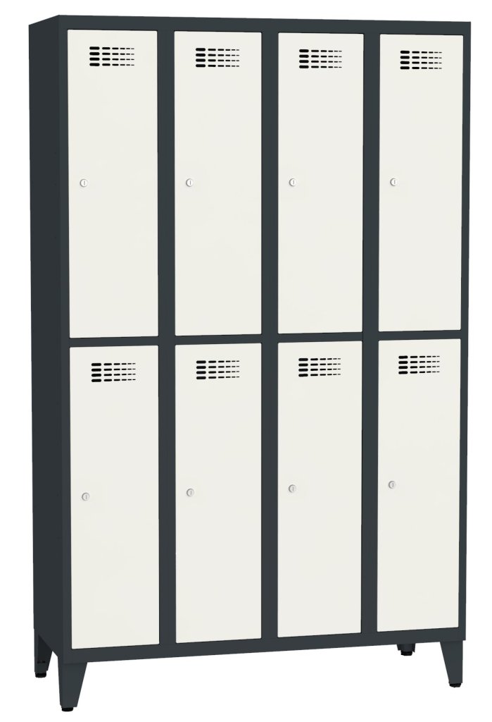 Osmidverová šatníková kovová skrinka na nohách so zváranou konštrukciou a moderným dizajnom ventilačného systému. Výška 1940 x celý popis a parametre