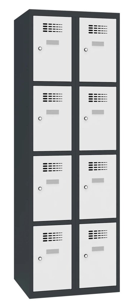 Osmidverová šatníková kovová skrinka so zváranou konštrukciou a moderným dizajnom ventilačného systému. Výška 1800 x šírka 600 x celý popis a parametre