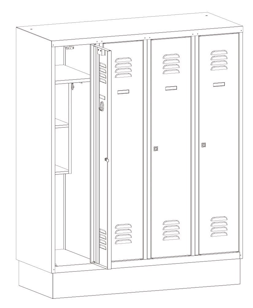 Štvordverová šatníková kovová skrinka so zníženou výškou a moderným dizajnom ventilačného systému. Vhodná pre žiakov prvého stupňa. Výška 1450 x šírka 1200 x hĺbka 500 mm. Na dverách samolepiaci štítok na meno. 16 farebných odtieňov na výber v cene bez príplatku. Rôzne druhy zamykanie.
