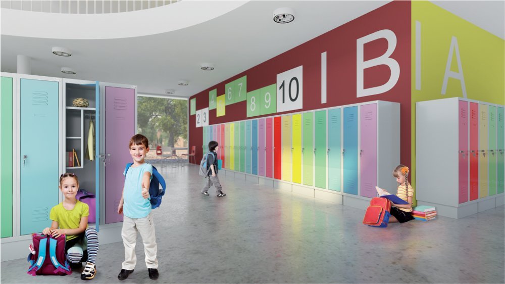 Jednodverová šatníková kovová skrinka so zníženou výškou a moderným dizajnom ventilačného systému. Vhodná pre žiakov prvého stupňa. Výška 1450 x šírka 300 x hĺbka 500 mm. Na dverách samolepiaci štítok na meno. 16 farebných odtieňov na výber v cene bez príplatku. Rôzne druhy zamykanie.
