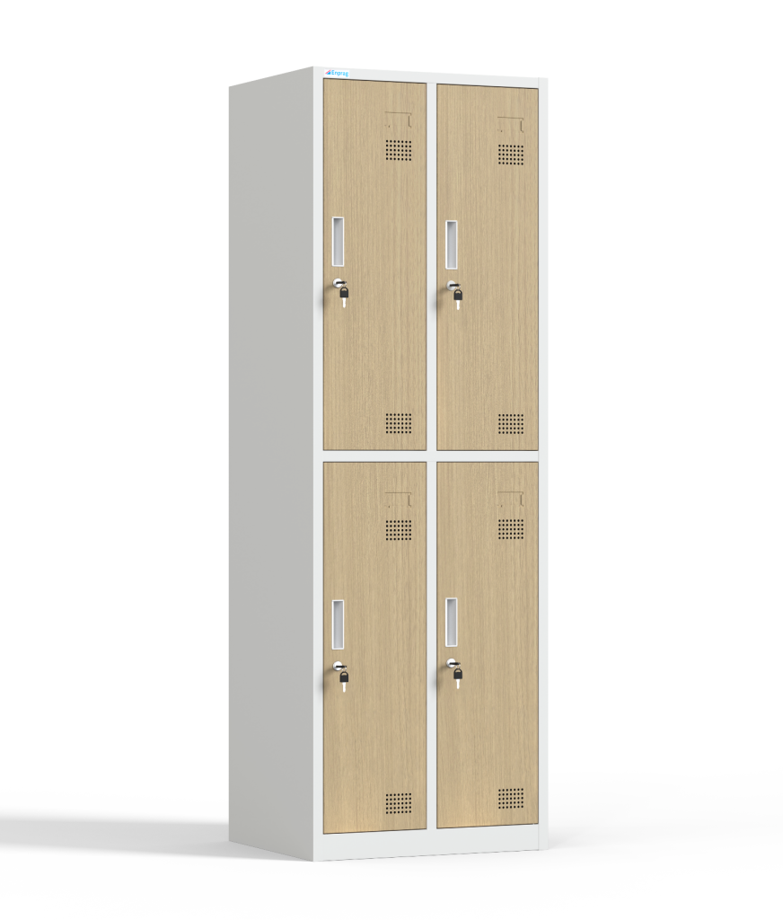 Šatníková DEMONTOVANÁ skrinka kovová, výška 1800 x šírka 600 x hĺbka 500 mm. Uzamykanie cylindrickým zámkom s dvoma kľúčmi. Povrchová úprava práškovou farbou sivá RAL 7047/imitácia svetlé drevo.