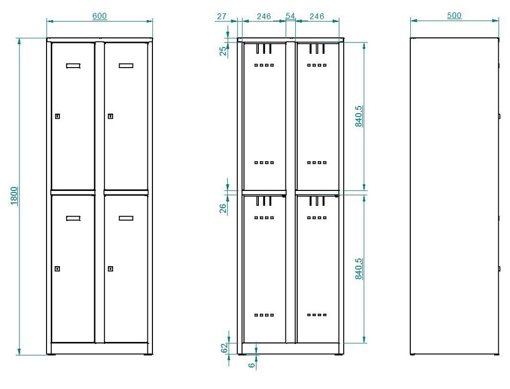 Šatníková skriňa kovová delená, výška 1800 x šírka 600 x hĺbka 500 mm. Zamykanie na kľúč alebo uzáver pro visací zámok. Farba celý popis a parametre
