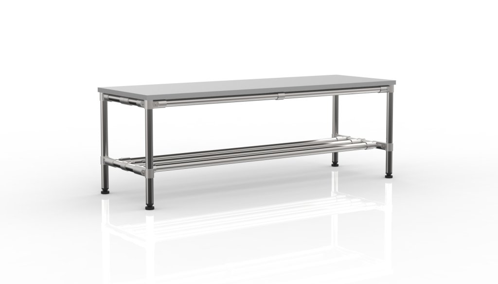 Lavica z rúrkového stavebnicového systému šírky 1200 mm.