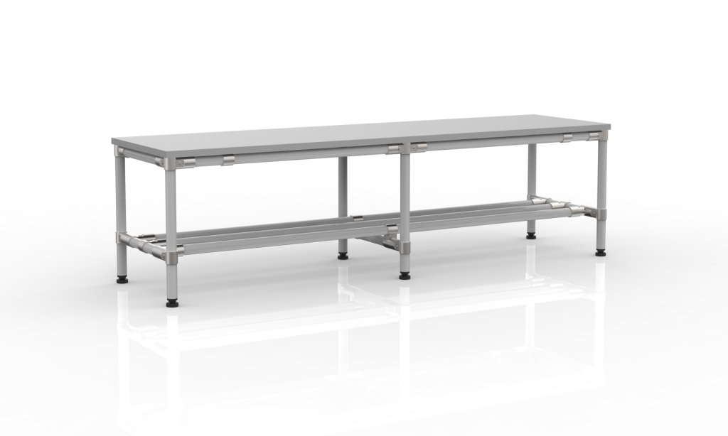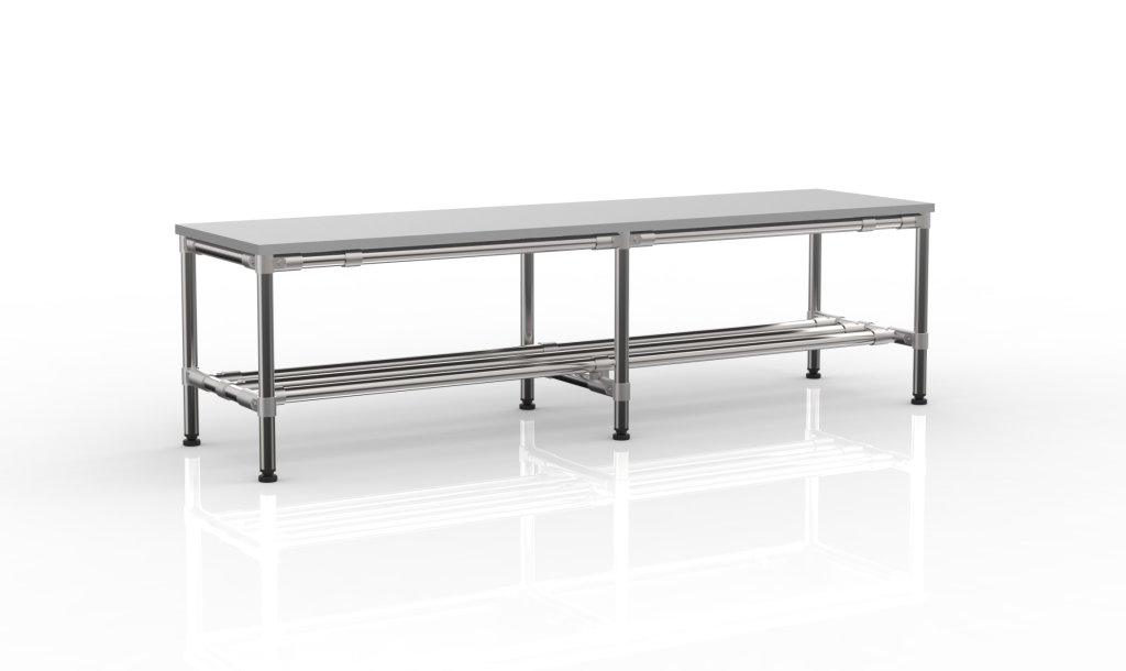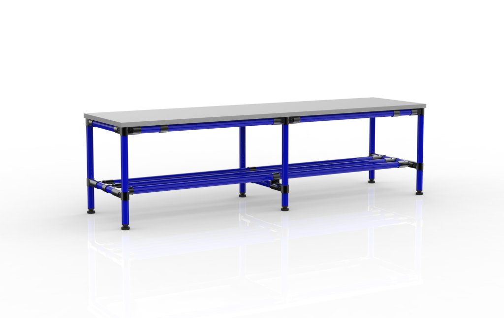 Lavica z rúrkového stavebnicového systému šírky 1500 mm.