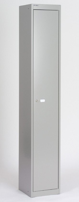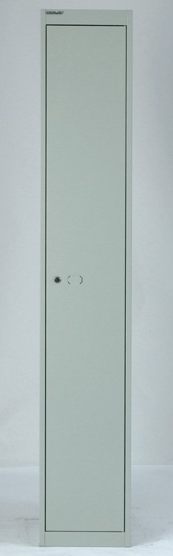 Jednodverová kovová šatňová skriňa. Šírka 305, výška 1802, hĺbka 457 mm. Uzamykanie cylindrickým zámkom s možnosťou náhrady uzáverom pre visiaci zámok alebo kódovým zámkom.