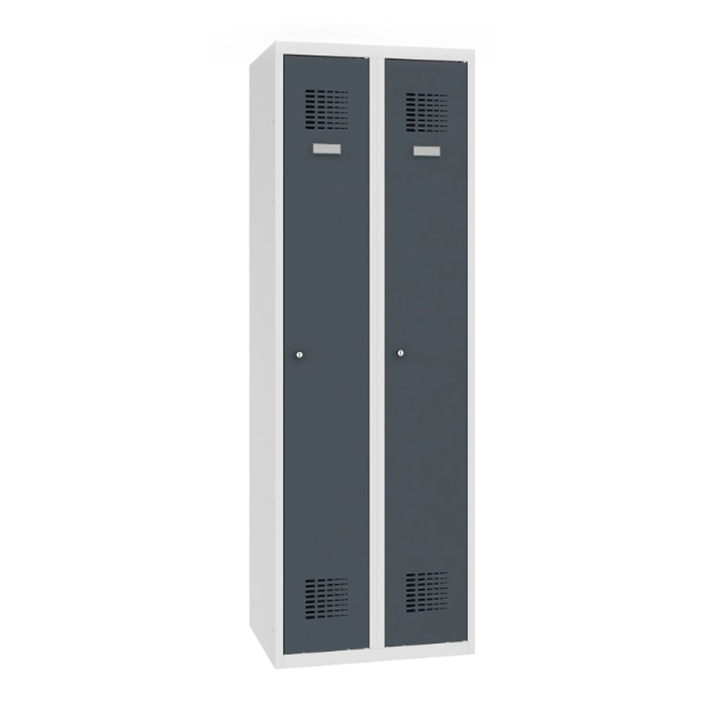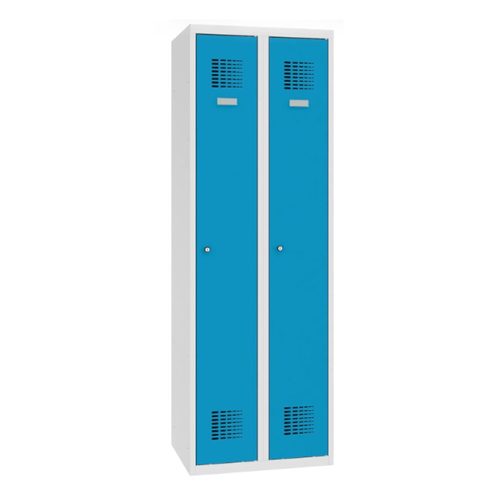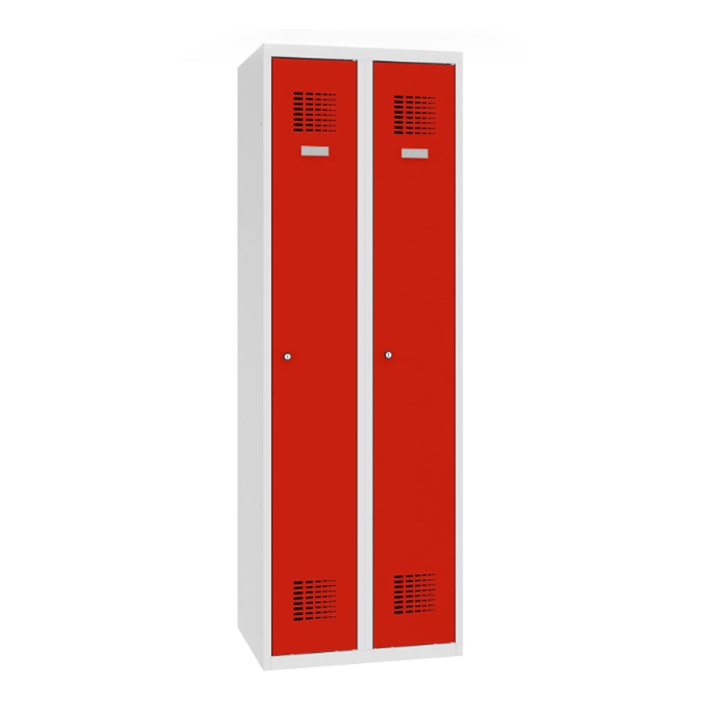 Dvojdverová šatníková skrinka zváraná s moderným dizajnom ventilačného systému. Výška 1800 x šírka 600 x hĺbka 500 mm. Cylindrický celý popis a parametre
